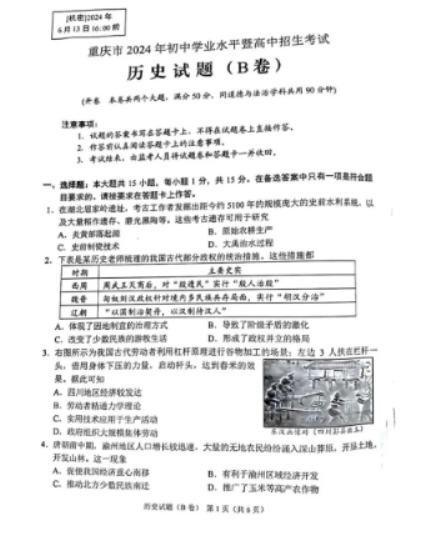 2024年重庆中考历史B卷真题