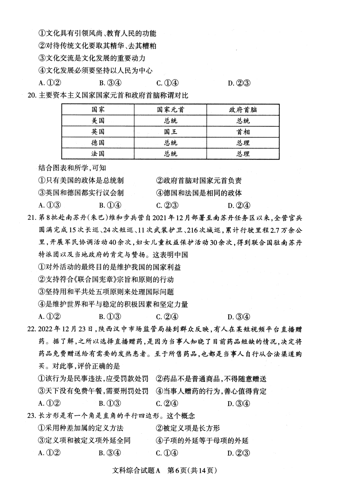 2023届山西省高考考前适应性测试(3月)文科综合试题及答案