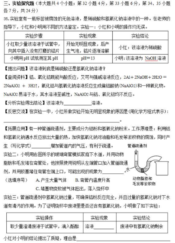 导读大试题为您提供2023年石嘴山中考化学模拟试卷及答案