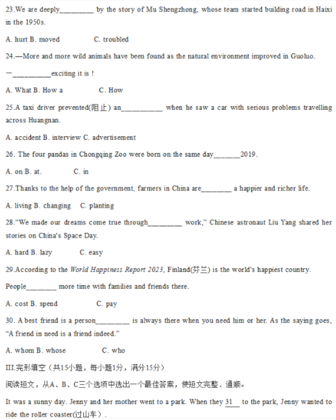 导读大试题为您提供2023西宁中考英语真题试卷及答案