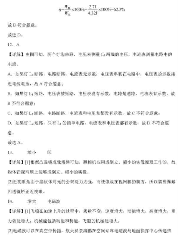 2023年永州中考物理真题答案