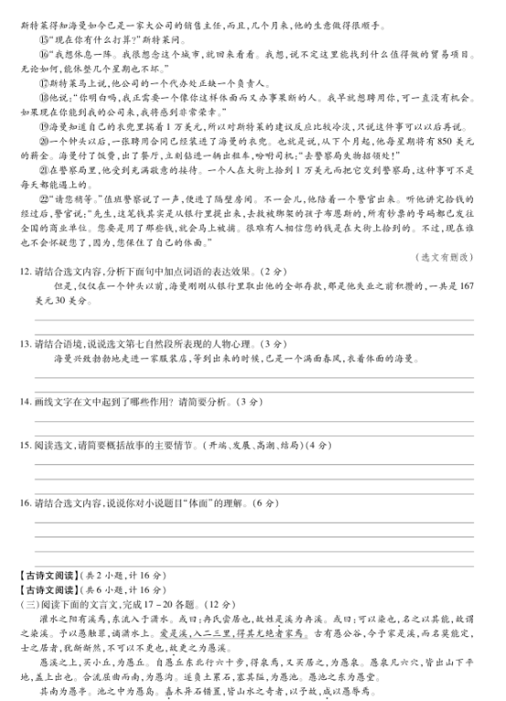 语文试题注意事项:1、学生必须用黑色(或蓝色)钢笔、圆珠笔或签字笔在试卷上答题2、填涂答题卡必须使用2B铅笔填涂。3、答...