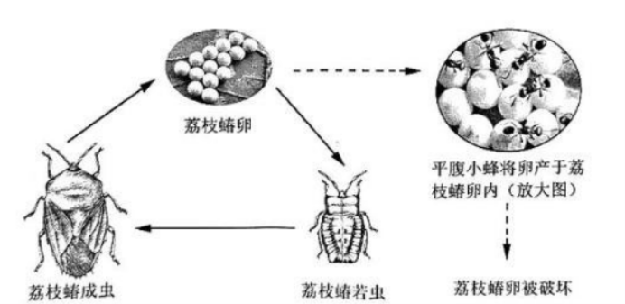 34. 荔枝蝽是荔枝和龙眼果园中常见的害虫。我省昆虫学家蒲蛰龙院士(1912—1997)应用平腹小蜂防治荔枝蝽虫害,效果显著,在生物防治领域做出了重大贡献。请分析并回答问题。