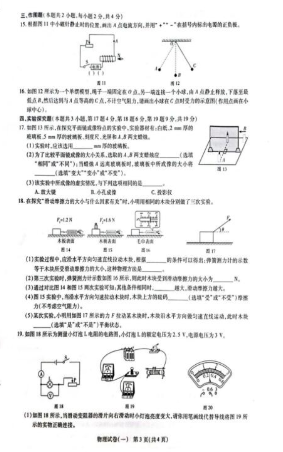 2023济南市实验初级中学中考物理模拟试题及答案