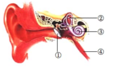 22.下图是耳朵的基本结构示意图,听觉感受器位于