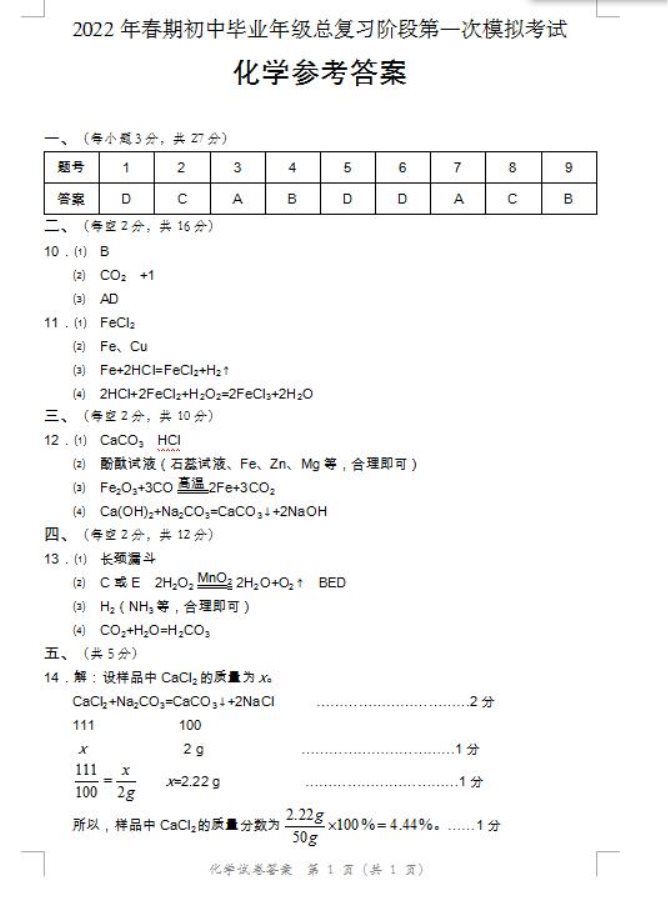 导读大试题为您提供2023德阳中考化学模拟试题及答案