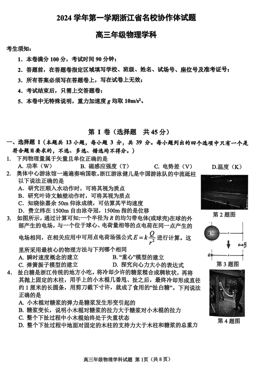2025届浙江省G12名校协作体高三返校考物理试题质量较高,题型多样,将作为考察考生对相应考点的掌握程度,考后将及时整理试题及答案解析相关信息,以供考生学习交流!