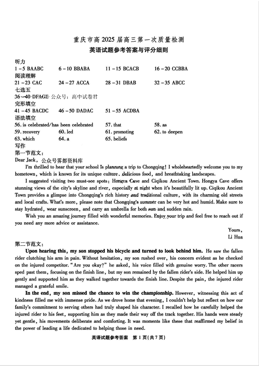 重庆主城五区二诊2025届学业质量调研抽测(第二次)英语试题质量较高,题型多样,将作为考察考生对相应考点的掌握程度,考后...
