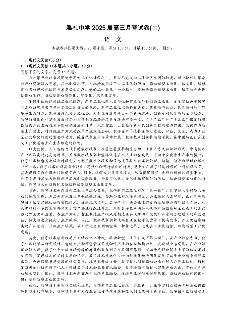 郑州市2025年高三下学期第三次质量预测语文试题质量较高,题型多样,将作为考察考生对相应考点的掌握程度,考后将及时整理试...