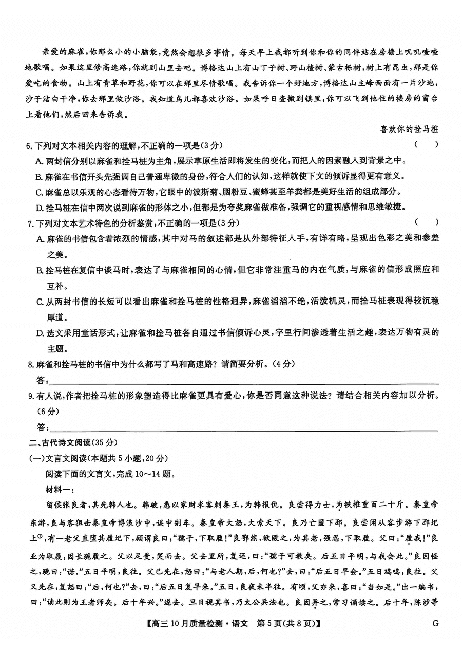 导读2025届九师联盟高三11月联考语文试题质量较高,题型多样,将作为考察考生对相应考点的掌握程度,考后将及时整理试题及答案解析相关信息,以供考生学习交流!语文试题及答案解析