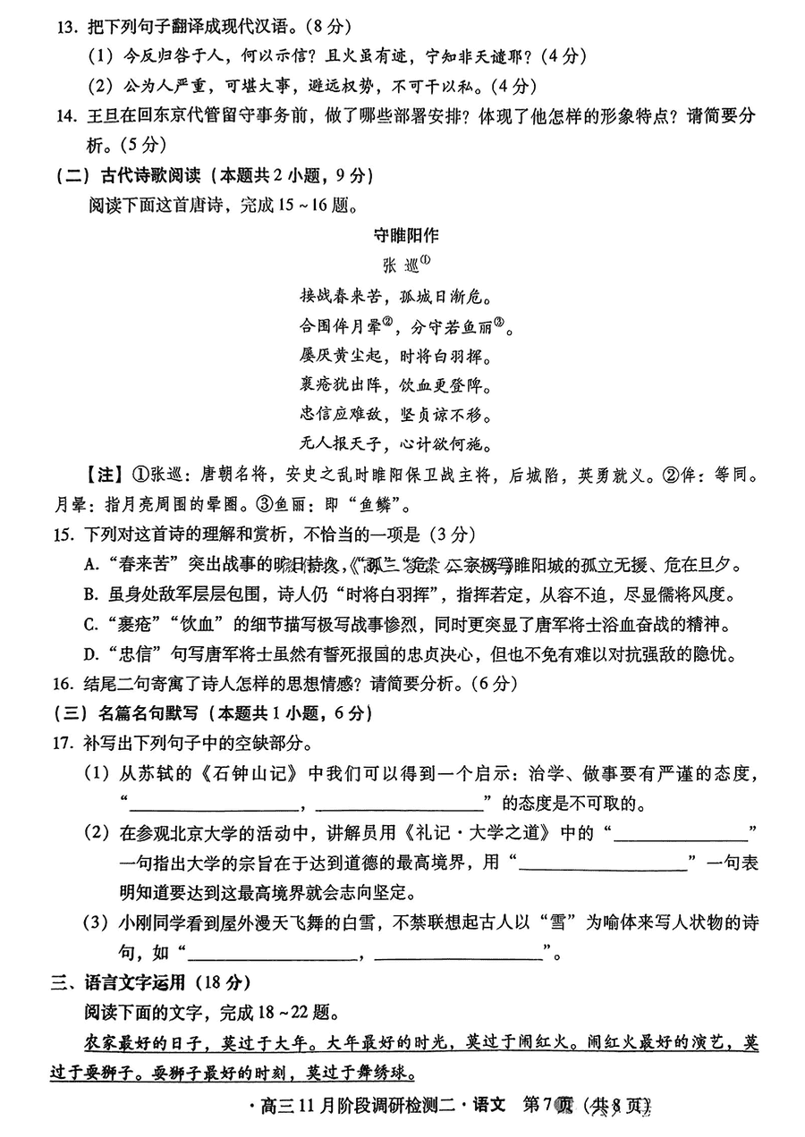 河北省2025届高三上学期11月阶段调研检测二语文试题质量较高,题型多样,将作为考察考生对相应考点的掌握程度,考后将及时整理试题及答案解析相关信息,以供考生学习交流!