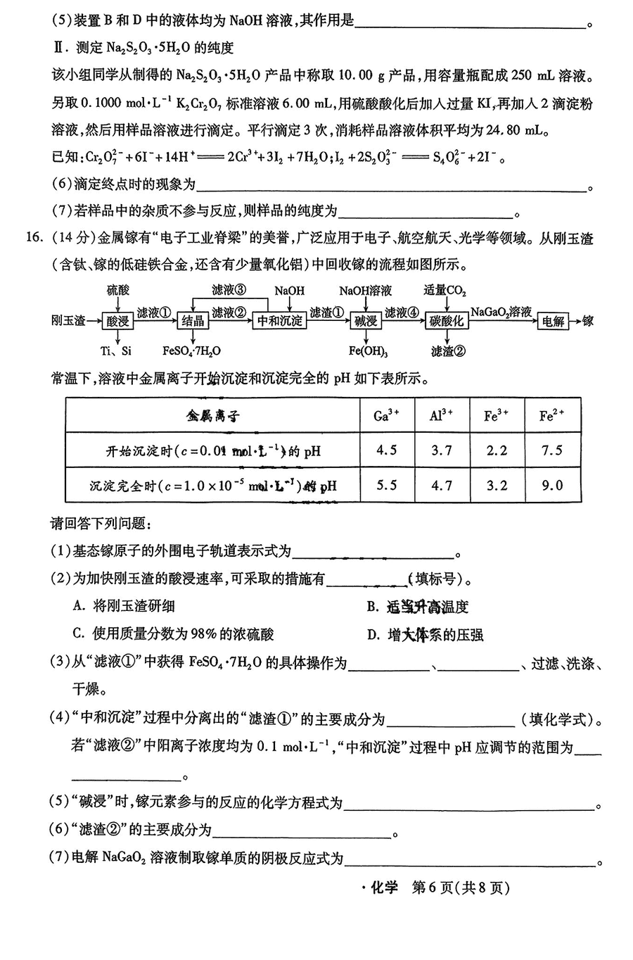 2025届石家庄市高三质检(二)化学试题质量较高,题型多样,将作为考察考生对相应考点的掌握程度,考后将及时整理试题及答案...