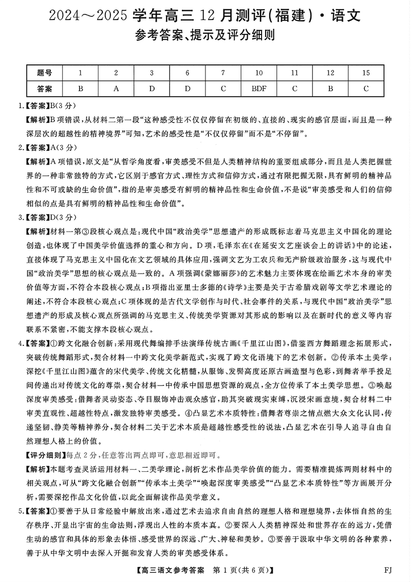 导读福建省金科大联考2024-2025学年高三12月测评语文试题质量较高,题型多样,将作为考察考生对相应考点的掌握程度,考后将及时整理试题及答案解析相关信息,以供考生学习交流!语文试题及答案解析