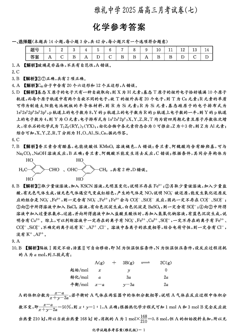 导读湖南雅礼中学2025届高三下学期月考卷(七)化学试题质量较高,题型多样,将作为考察考生对相应考点的掌握程度,考后将及时整理试题及答案解析相关信息,以供考生学习交流!化学试题及答案解析