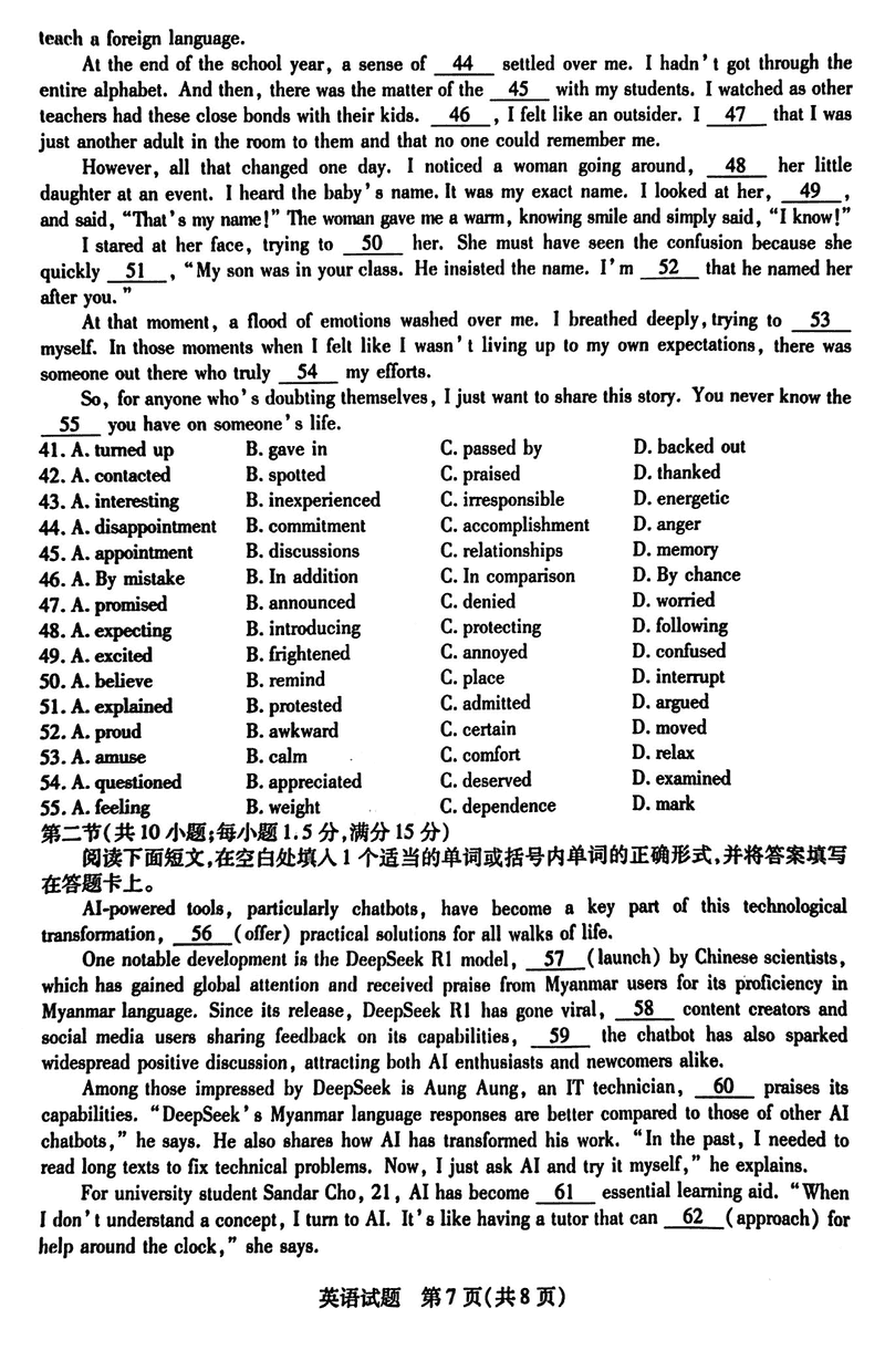 安徽省卓越县中联盟2024-2025学年高三下学期5月检测英语试题质量较高,题型多样,将作为考察考生对相应考点的掌握程度...
