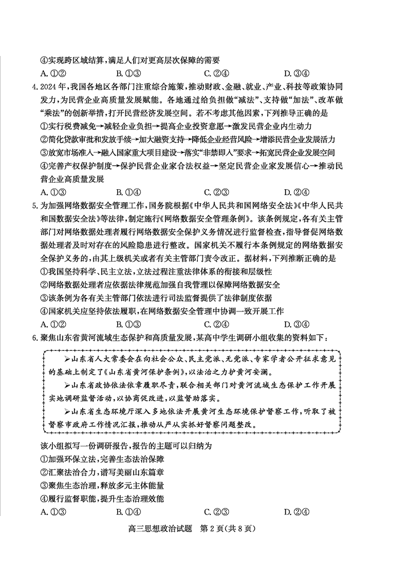导读烟台、德州二模2025届高三高考适应性测试政治试题质量较高,题型多样,将作为考察考生对相应考点的掌握程度,考后将及时整理试题及答案解析相关信息,以供考生学习交流!政治试题及答案解析