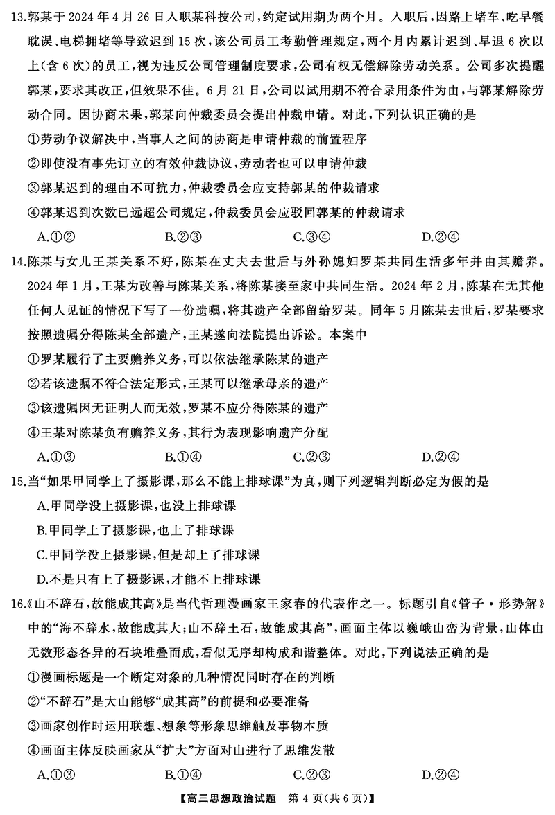 湖南省天壹名校联盟2025届高三5月适应性考政治试题质量较高,题型多样,将作为考察考生对相应考点的掌握程度,考后将及时整理试题及答案解析相关信息,以供考生学习交流!