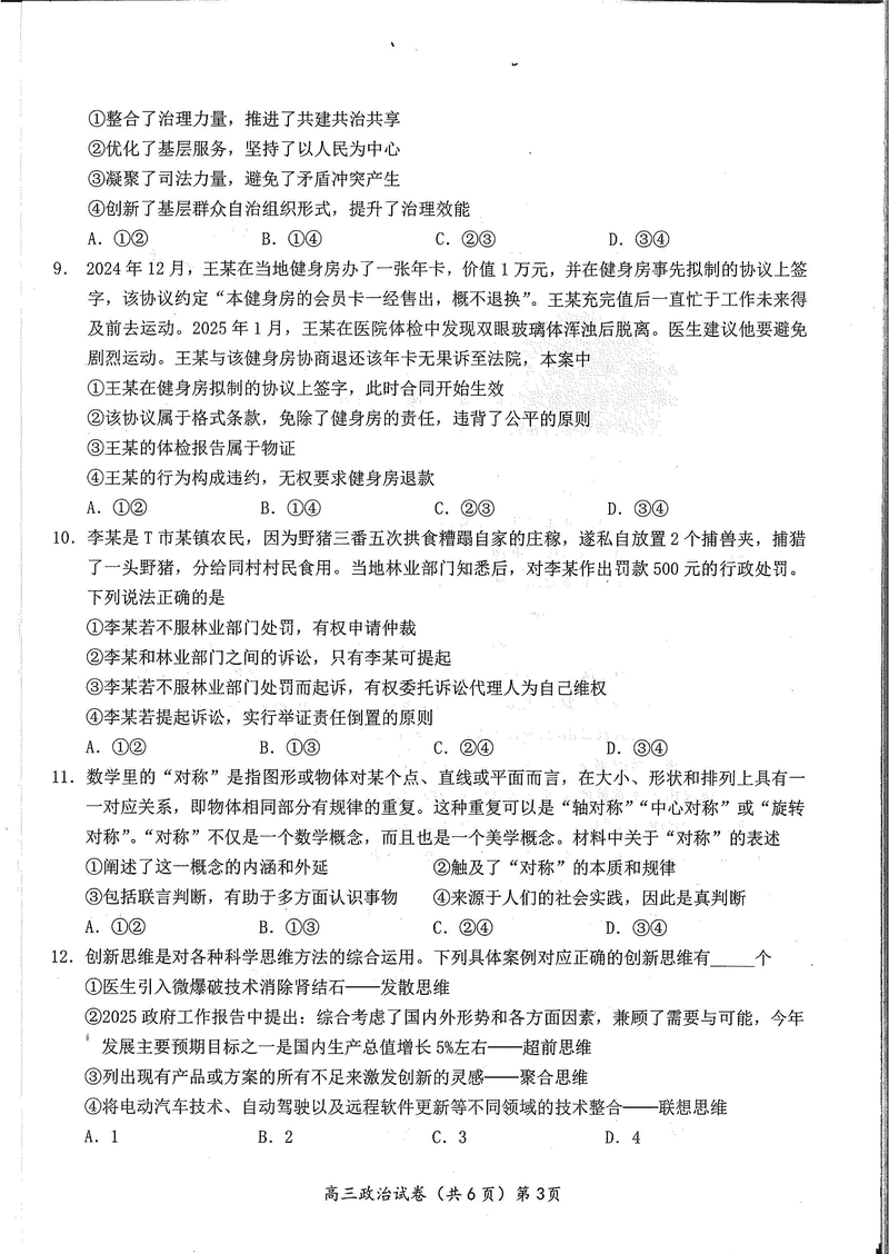 导读湖北省鄂东南2025年春季高三五月模拟考政治试题质量较高,题型多样,将作为考察考生对相应考点的掌握程度,考后将及时整理试题及答案解析相关信息,以供考生学习交流!政治试题及答案解析