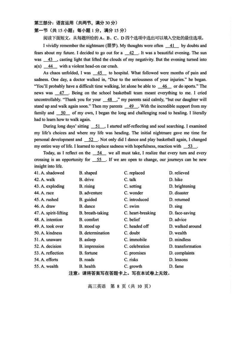 沈阳市2025届高三下教学质量监测(三)英语试题质量较高,题型多样,将作为考察考生对相应考点的掌握程度,考后将及时整理试题及答案解析相关信息,以供考生学习交流!