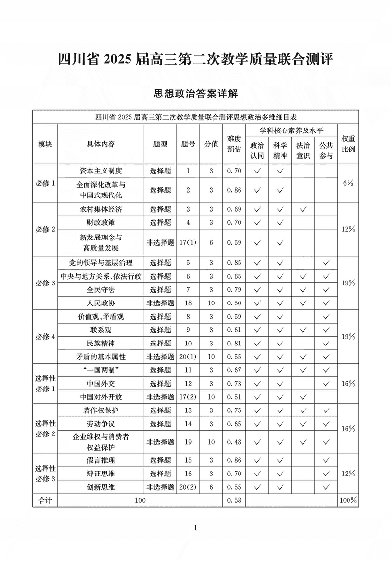 2025届四川高三第二次教学质量联合测评政治试题质量较高,题型多样,将作为考察考生对相应考点的掌握程度,考后将及时整理试题及答案解析相关信息,以供考生学习交流!