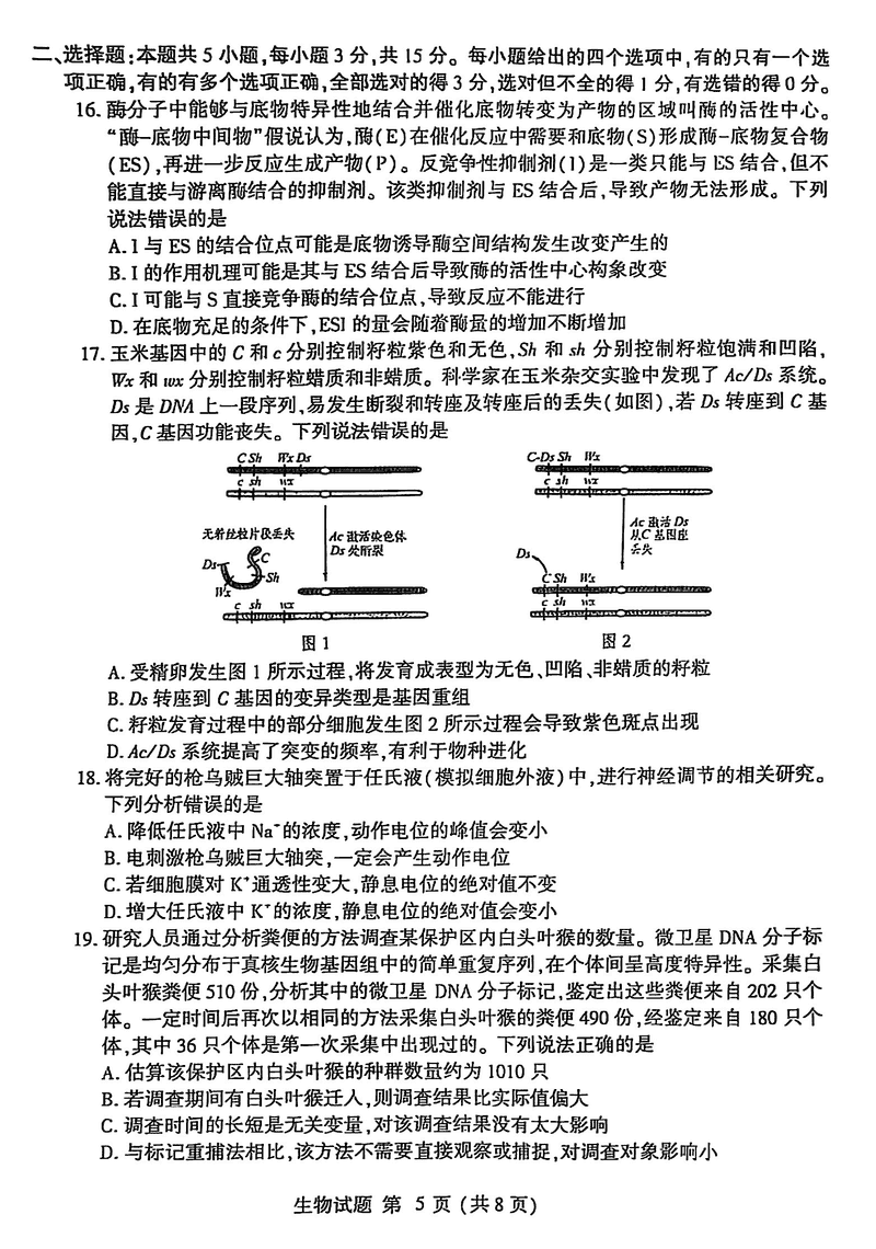 导读山东四县联考(日照五莲+潍坊安丘+诸城+临沂兰山)2025年5月高考模考生物试题质量较高,题型多样,将作为考察考生对相应考点的掌握程度,考后将及时整理试题及答案解析相关信息,以供考生学习交流!生物试题及答案解析
