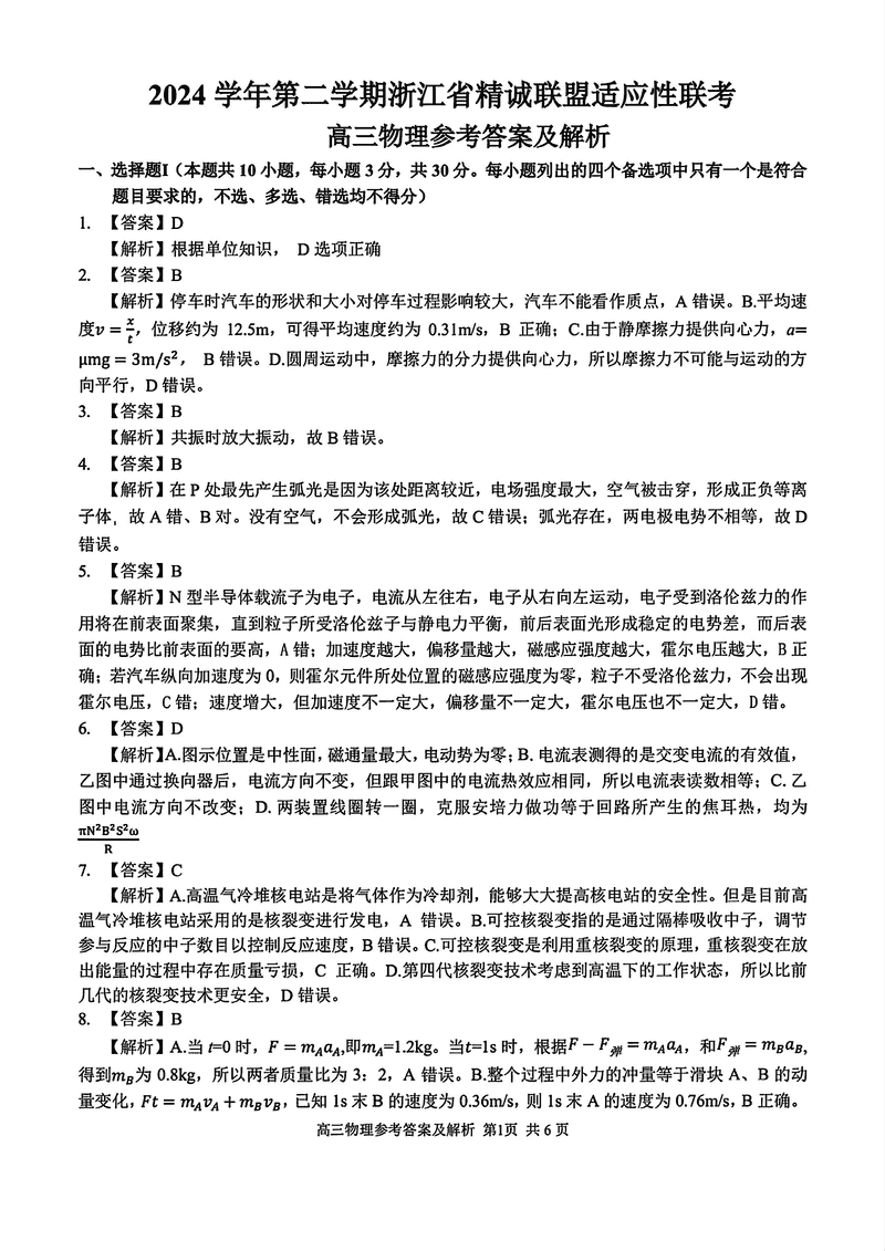 导读浙江精诚联盟2025高三5月适应性联考物理试题质量较高,题型多样,将作为考察考生对相应考点的掌握程度,考后将及时整理试题及答案解析相关信息,以供考生学习交流!物理试题及答案解析