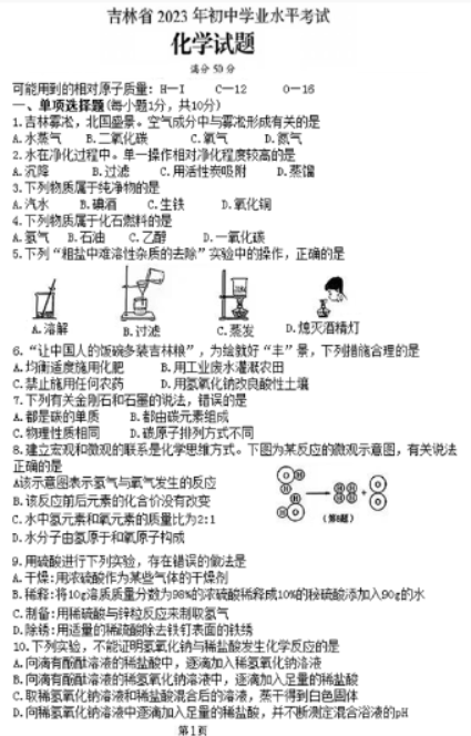 导读大试题为您提供2023长春中考化学真题