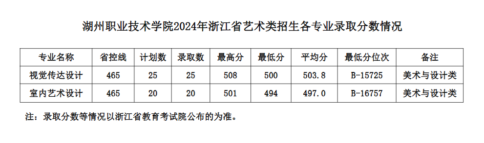 2024年湖州职业技术学院艺术类录取分数线【全国】