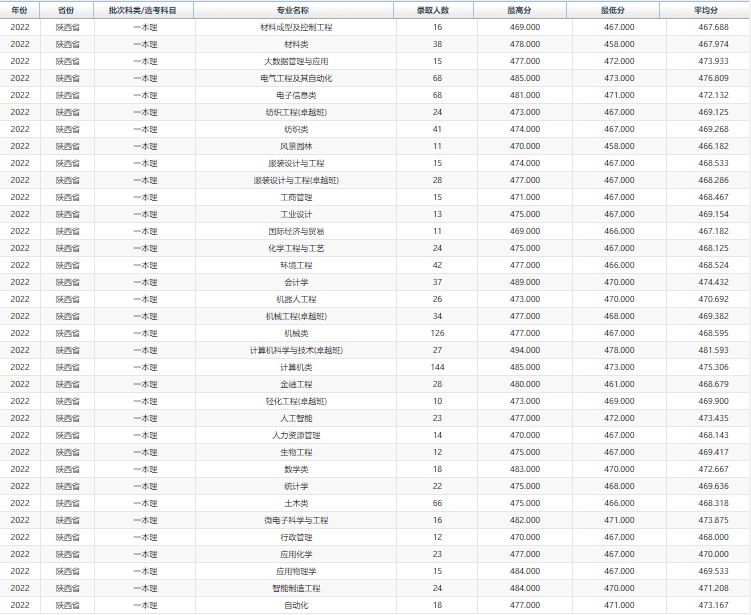 | 2024 | 陕西省 | 一本理 | 服装设计与工程(卓越班) | 30 | 506.000 | 499.000 | 501.600 |