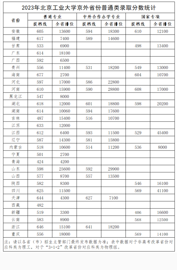 2023北京工业大学录取分数线【全国】