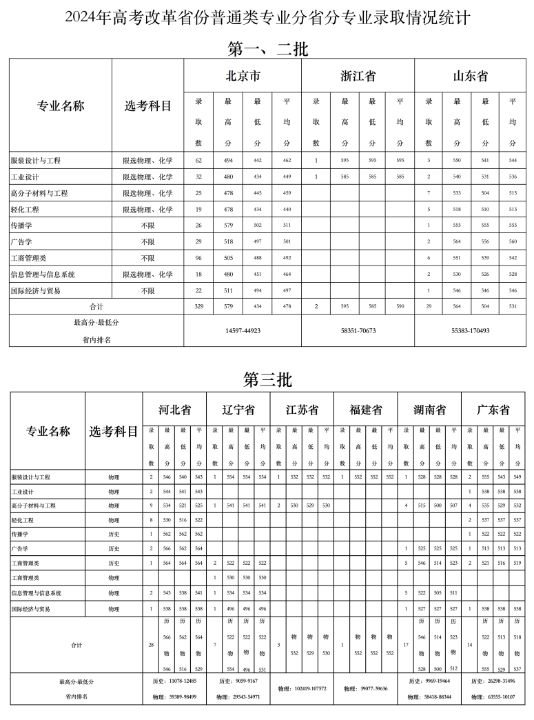 2024北京服装学院录取分数线【全国】