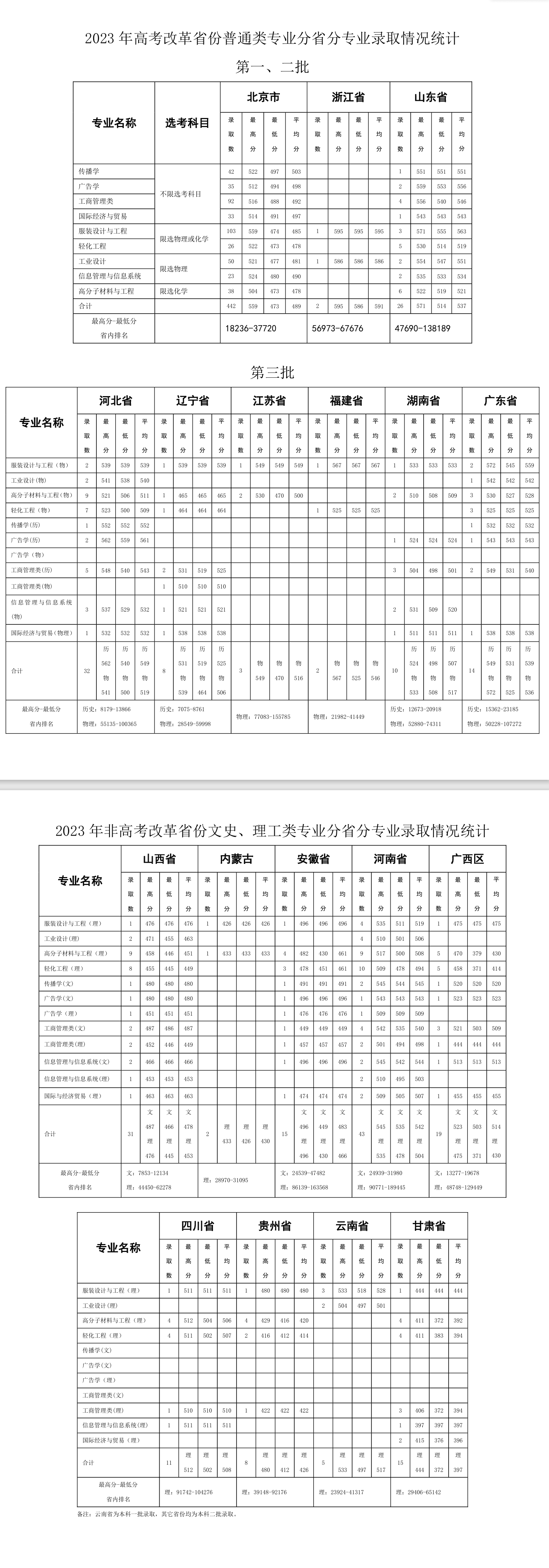 2023北京服装学院录取分数线【全国】