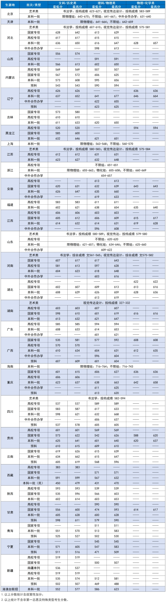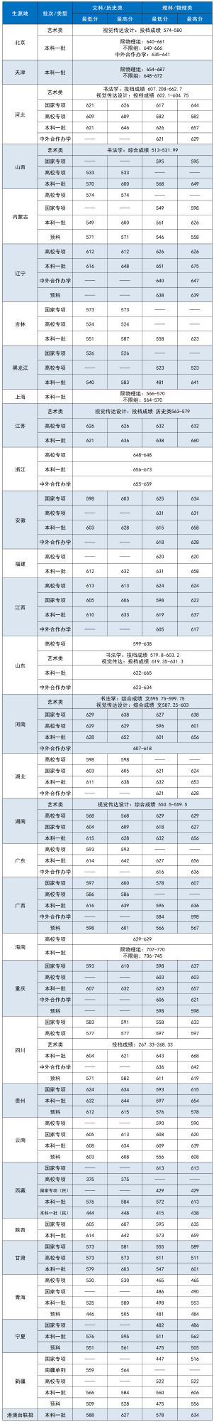| 年份 | 省市 | 科类 | 类型 | 最低分 | 平均分 | 最高分 |