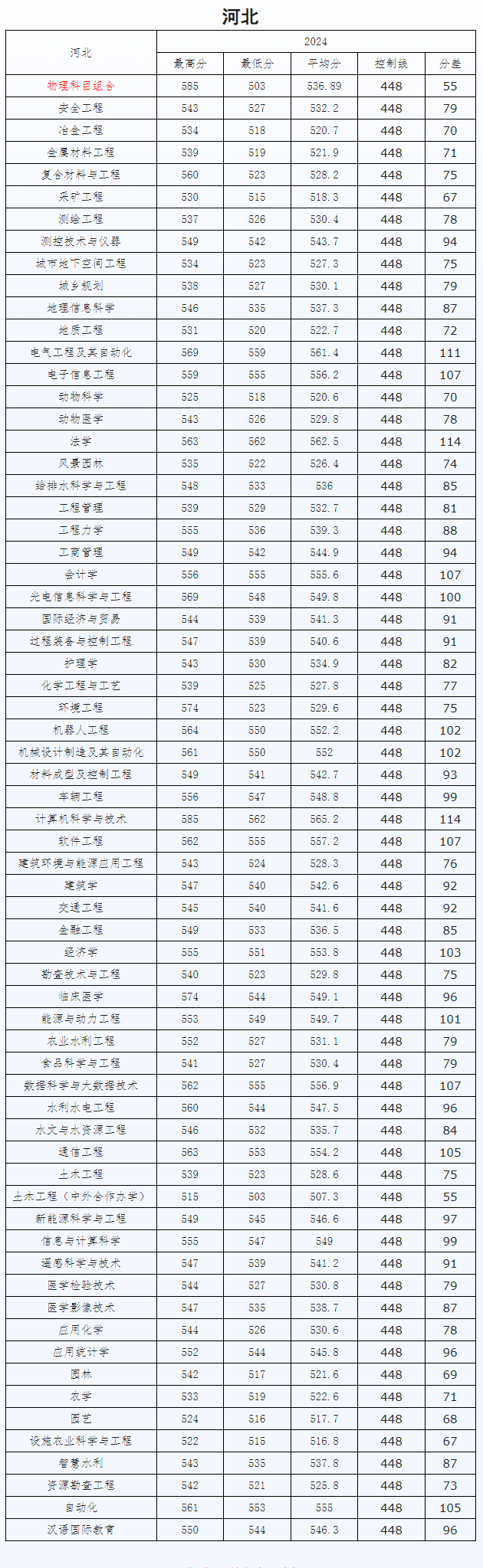 | 2025 | 河北 | 本科批 | 物理组 | 给排水科学与工程 | 561 | 552 | 78313 | 555 | 459 | 93 |