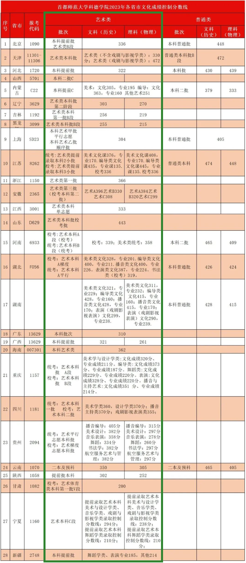 2023首都师范大学科德学院艺术类录取分数线【全国】
