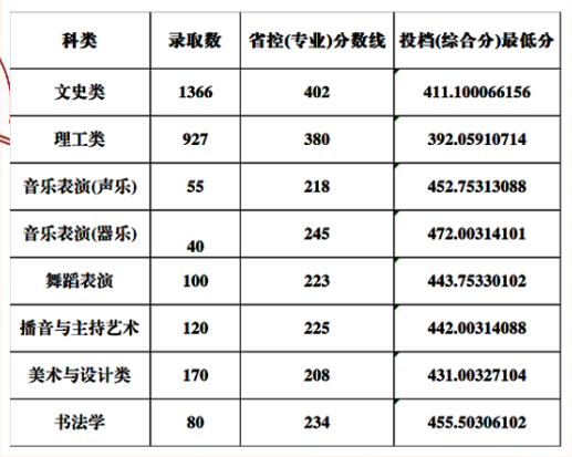 在山西省第二批本科B类录取中,文史最高分430分,超出省控线12分,最低分418分;理工最高分401分,超出征集省控线20分,最低分388分,超出征集省控线7分。