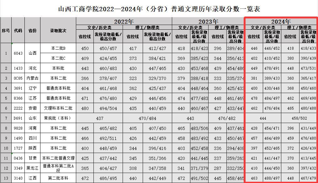 2024山西工商学院录取分数线【全国】