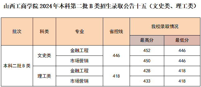 山西工商学院山西省2023年第二批本科B类录取情况(文史类、理工类)