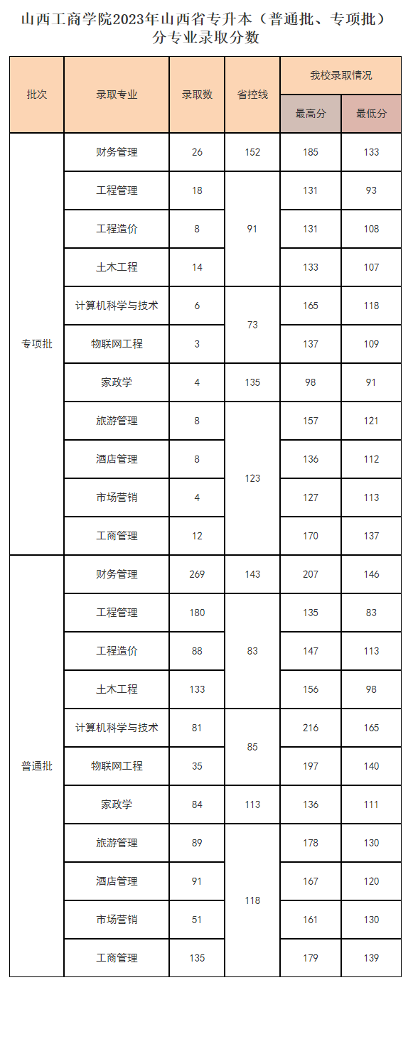 2023山西工商学院录取分数线【山西】