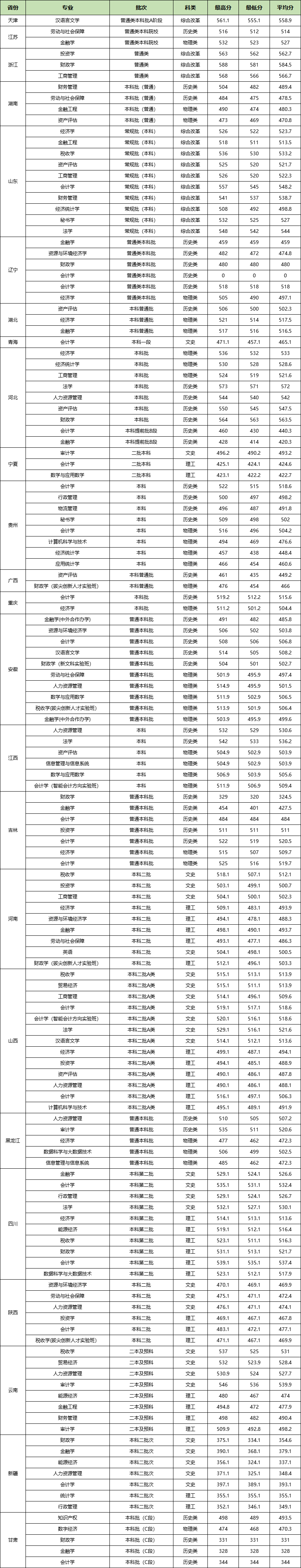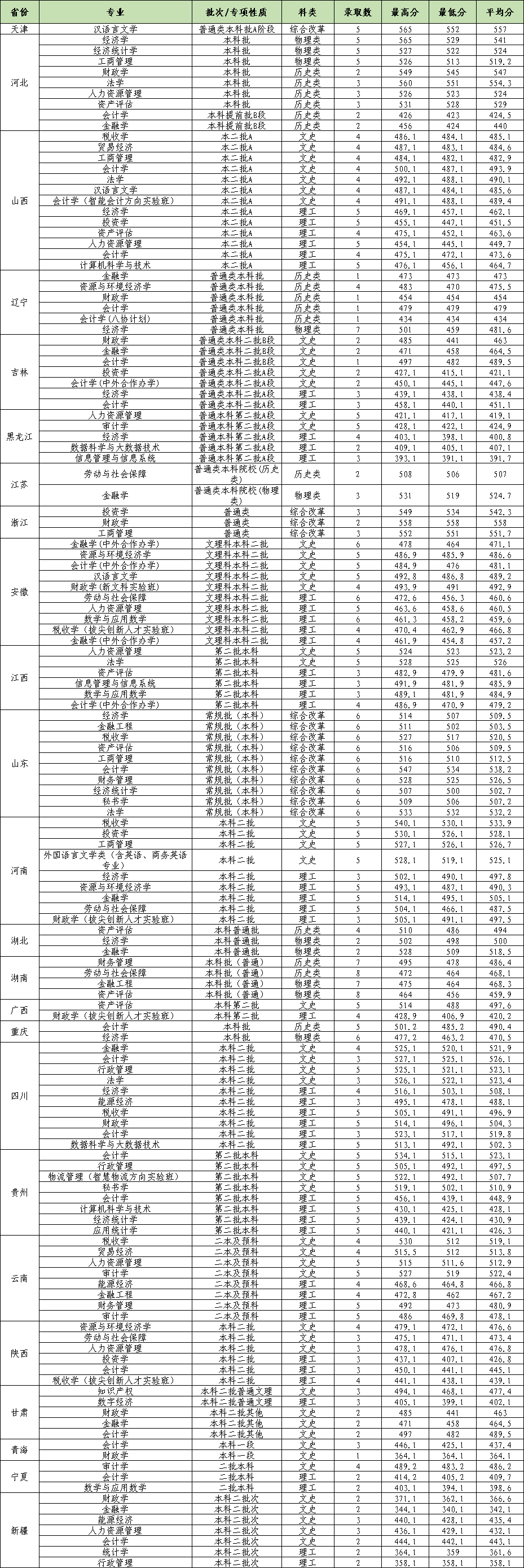 内蒙古财经大学2023年区外各专业录取情况统计表