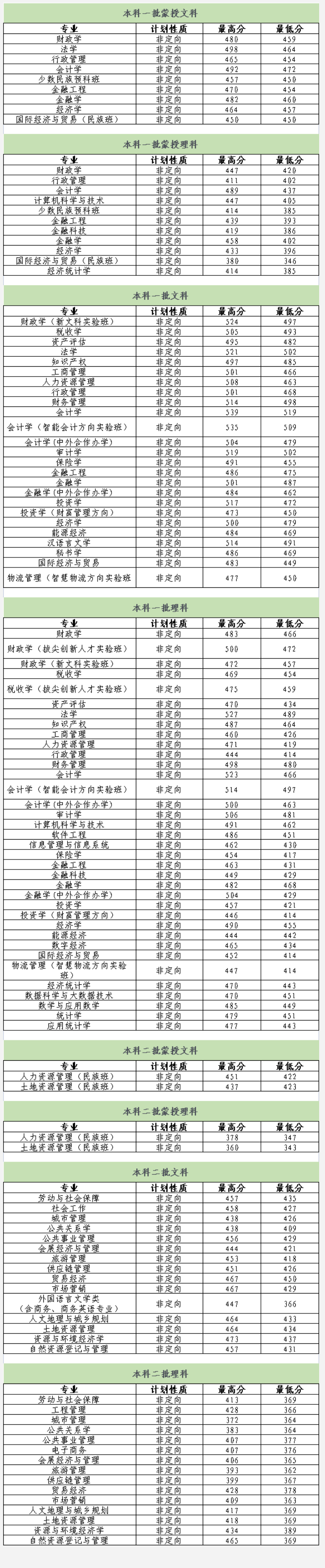 | 普通本科批 | 财政学 | 历史类 | 494.0 | 421.0 | 457.5 | |
