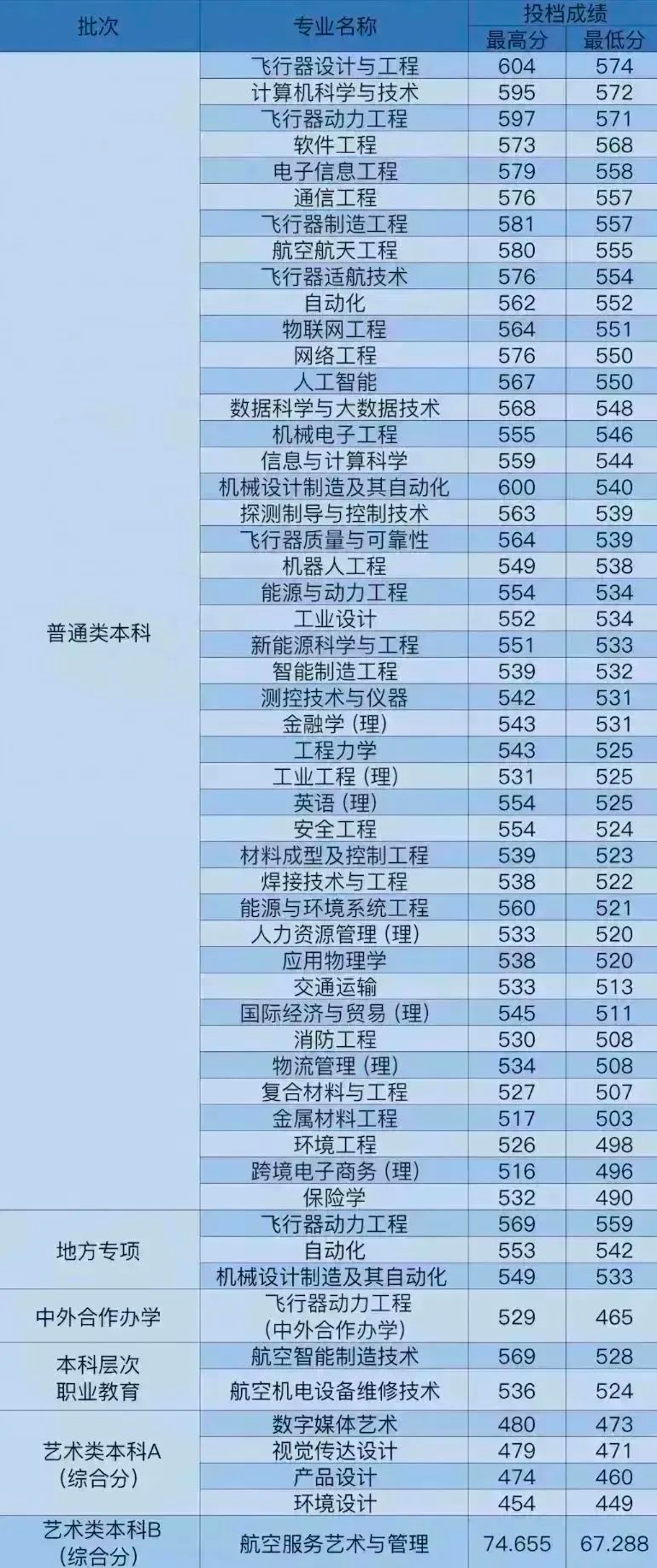 沈阳航空航天大学2025年在辽宁各类型各专业录取分数线