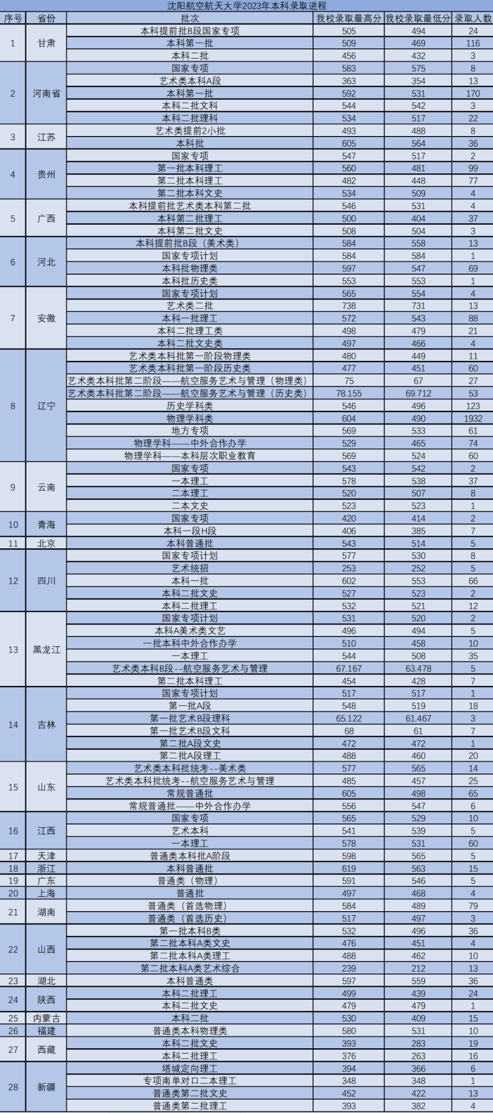 本文为大家整理的是沈阳航空航天大学2023-2025年录取分数线,希望对大家有所帮助,如有异议,还请以各省市教育考试院和学校公布的信息为准。