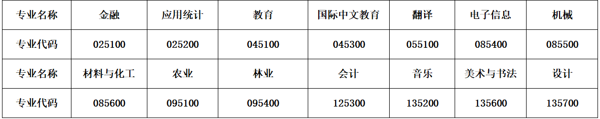 我校招收专业型研究生的专业有: