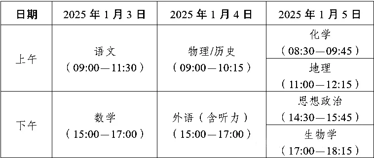 八省联考地理考试时间安排